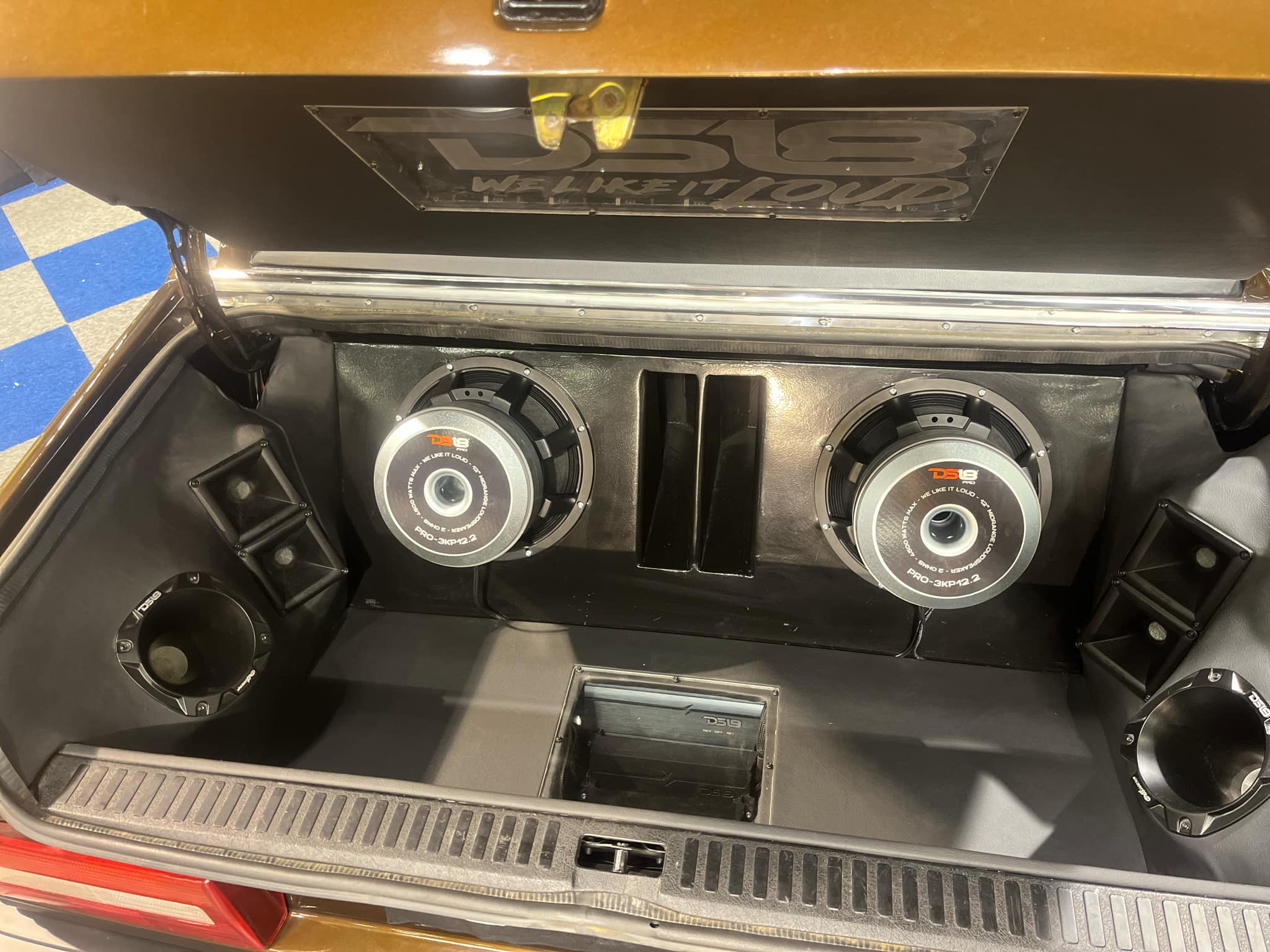 Men bagaget är där den riktiga showen finns, i form av två stycken helt unika 12 tums midbasar från DS18 med en effekttålighet på hela 3000W RMS styck. Midbasarna kompletteras av kompressionsladdade mellanregister och diskanter för att bilda ett baksystem som praktiskt taget sjunger!