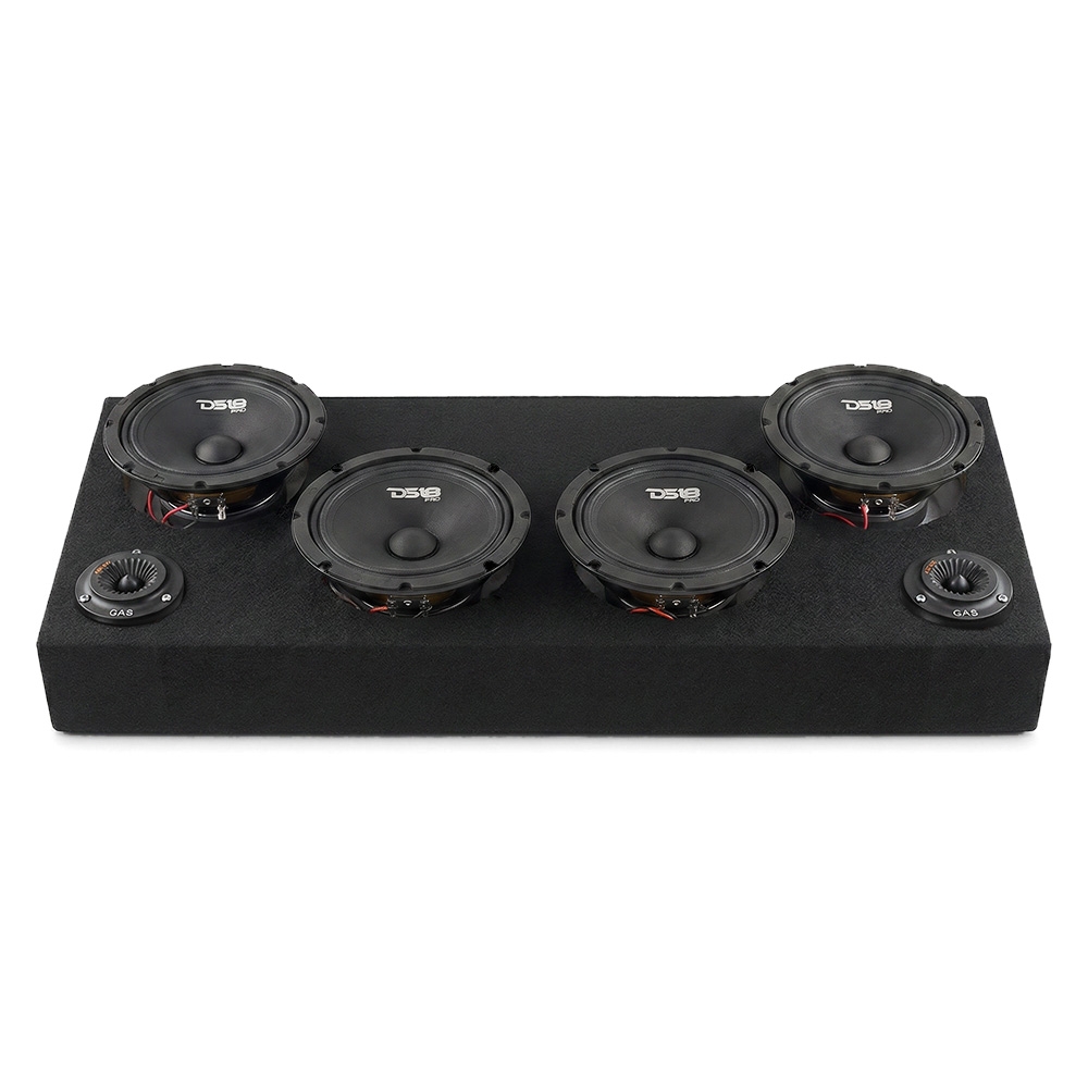 Ge din raggarbil en rejäl ljuduppgradering med detta paket där fyra kraftfulla DS18 PRO-GM8.4 midbasar samspelar med MAD PT2-254 horndiskanter i en smart Auto-Connect VE482SPL raggarplanka. Här får du en brutal ljudbild med både tryck i botten och krispiga toppar, perfekt för dig som vill dominera ljudscenen med stil och pondus utan krångel i monteringen.