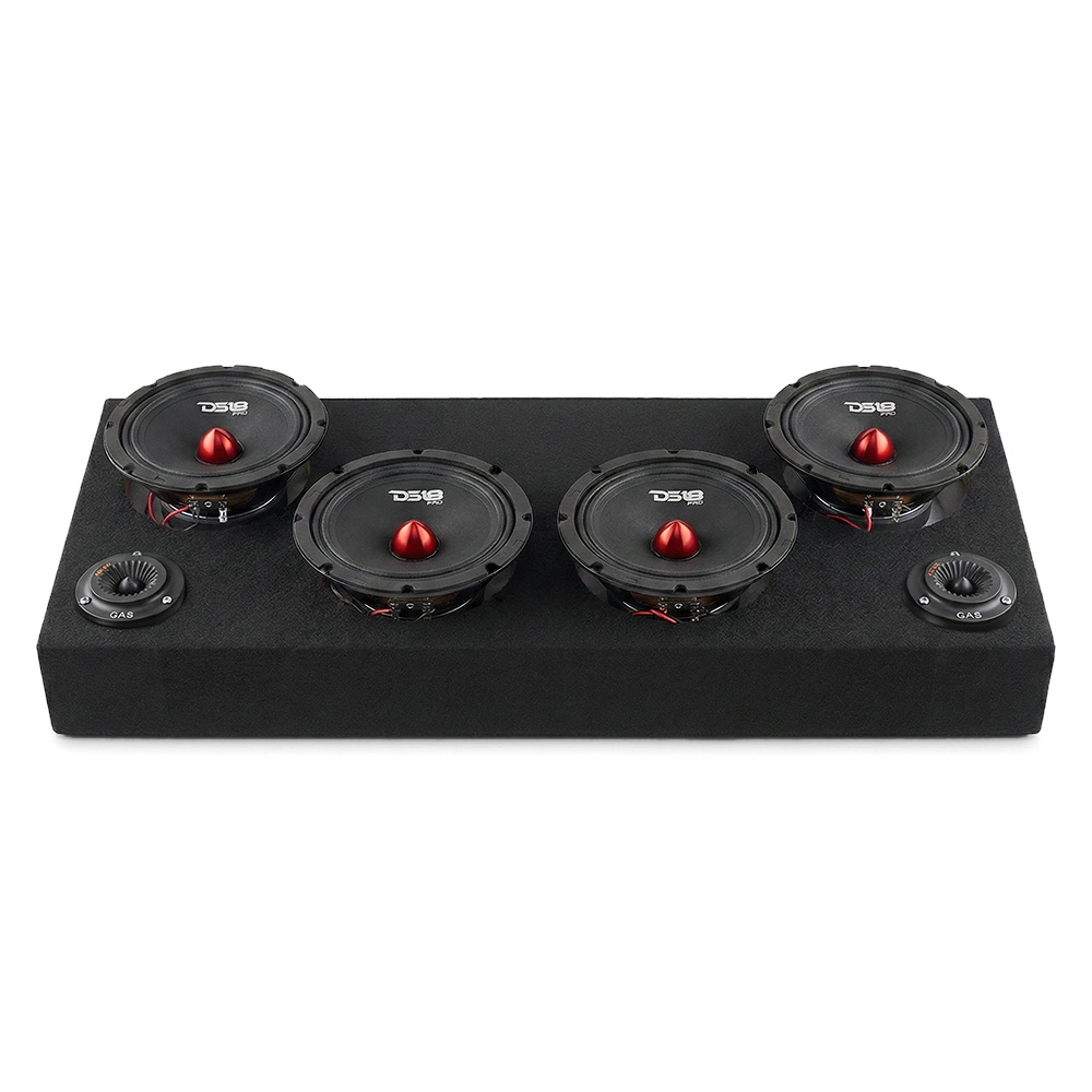 Ge din bil en rejäl ljuduppgradering med detta paket som kombinerar fyra DS18 PRO-GM8B 8-tums midbasar i en smart designad Auto-Connect VE482SPL raggarplanka med kraftfulla MAD PT2-254 horndiskanter. Ett setup som levererar skarp mellanregisteråtergivning och krispiga toppar, perfekt för dig som vill ha både tryck och klarhet utan att kompromissa med bilens interiör.