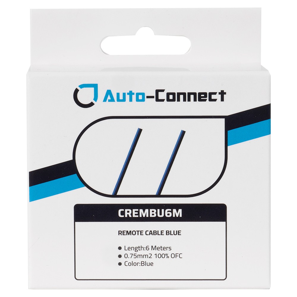 CREMBU6M från Auto-Connect är en 6 meter lång blå 0.75mm² kabel i 100% koppar. Främst är den tänkt att användas som remotekabel, från slutsteg till bilstereo eller exempelvis hög till lågnivåomvandlare.