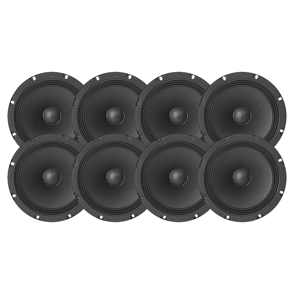 Satsa på maximal kraft och kontroll med 8-pack GAS MAX PMW1-84N – 8-tums neo-midbasar som tar ditt bygge till nästa nivå. Med starka N52-neodymmagneter och A3D-koner med vattenavvisande yta levererar de både djup och precision, perfekta för tuffa SPL- och ESQL-system där midbasen ska spela tungt och kontrollerat. Här får du råstyrka utan att tappa känsla.