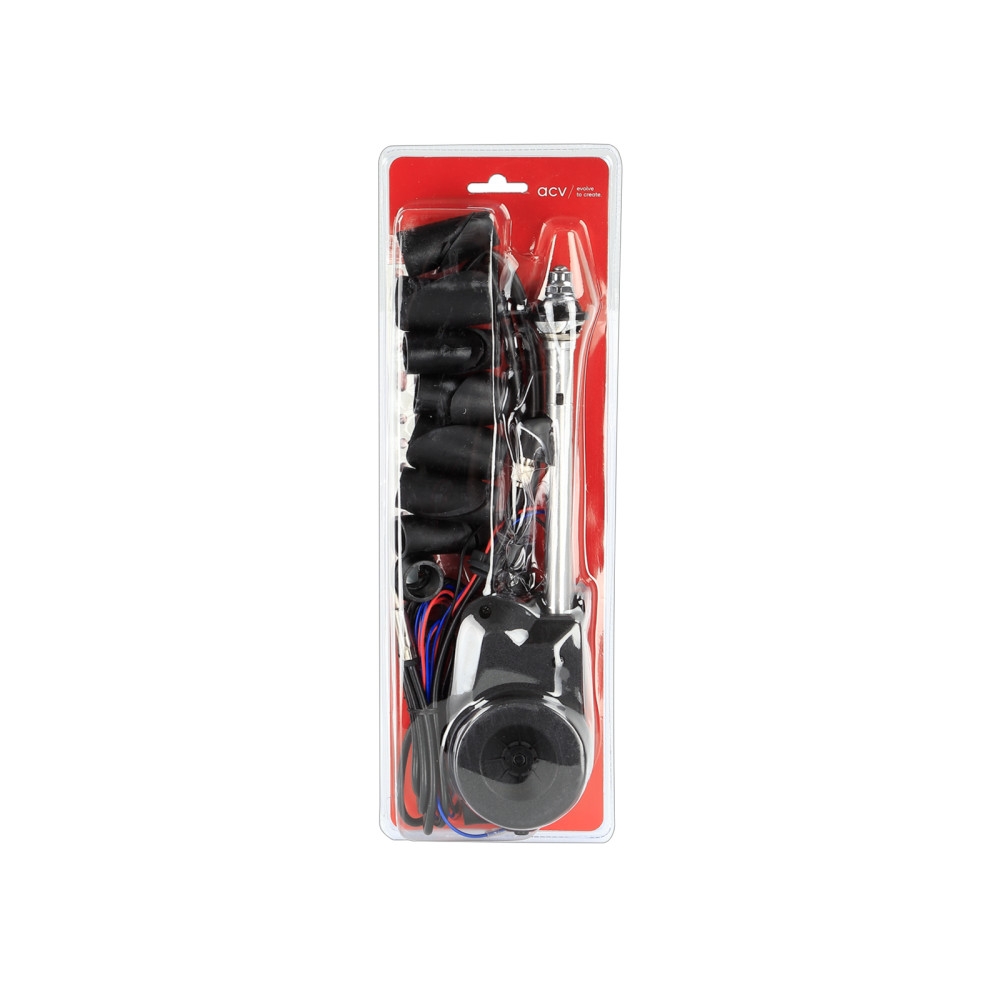 ACV 151000-38-1 är en teleskopantenn med automatisk funktion för AM/FM, designad för montering på bilens skärmar eller pelare. Antennen är tillverkad av högkvalitativa material som ger en hållbar konstruktion och säkerställer optimal mottagning även under svåra förhållanden. För att optimera antennmottagningen är det viktigt att säkerställa en bra jordanslutning vid monteringen. Det rekommenderas att ta bort eventuell färg vid kontaktpunkterna och skydda mot korrosion med lämplig kontaktpasta. Kontrollera installationsmått och förhållanden innan installation, då hålet kan behöva utvidgas för fordon med OEM-antenn. Antennen är universell och kan anpassas till olika bilar.