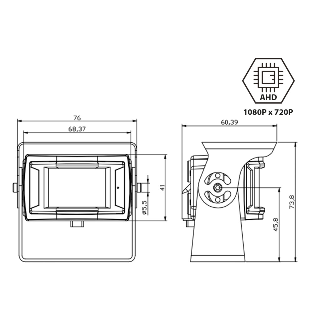ACV 772000-6012 är en bakåtvänd kamera designad för transporter och husbilar. Denna kamera har en AHD-upplösning och en vidvinkel på 170° vilket ger en bred synvinkel för att underlätta backning och parkering.