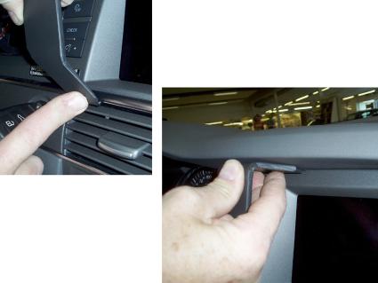 En hand installerar en del på dashboarden i en Audi A6 04-09.