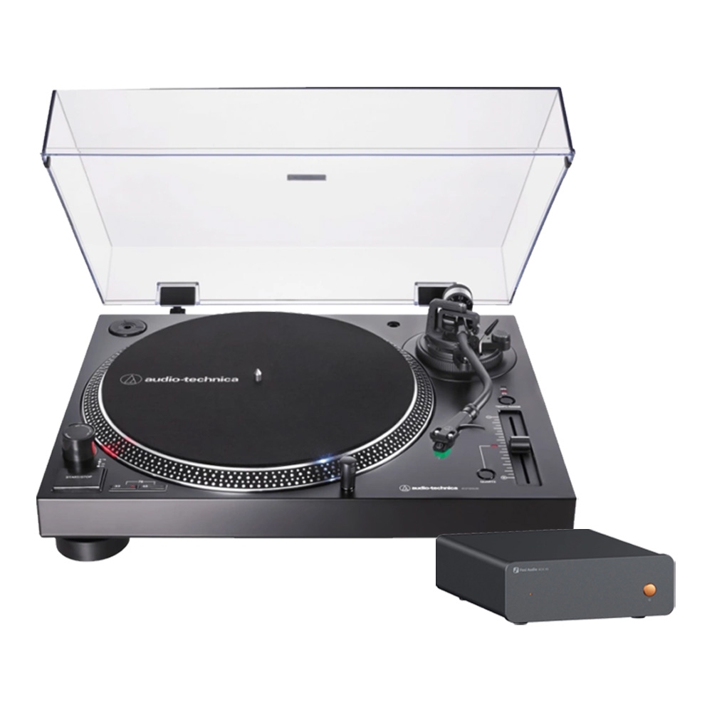 Audio Technica AT-LP120XUSB är en direktdriven skivspelare med tyst och exakt motor, förmonterad med senaste AT-VM95E pickupen och USB-utgång för smidig digitalisering. Tillsammans med Fosi Audio Box X5, ett justerbart och välbyggt phono-steg för både MM- och MC-pickuper, får du en komplett och prisvärd vinyllösning med hög ljudkvalitet och noggrant utvalda komponenter.