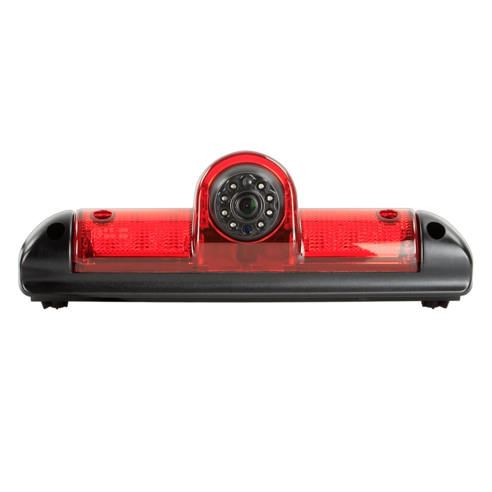 Produkten har en design i plast med svart och röd färg. Kameran har en bildsensor på 1/3" CMOS och använder NTSC TV-system. Den har en upplösning på 600 TV-linjer och en lins med en vinkel på 160° diagonalt, vilket ger en horisontell synvinkel på 115° och vertikal synvinkel på 75° plus 5°. Kameran fungerar vid temperaturer mellan -30°C och 75°C och har en lagringstemperatur på -40°C till 80°C. Kameran ansluts med en 4-polig ACV-systemkontakt och kräver en strömförsörjning på +12V DC med en strömförbrukning på 150mA under aktiv nattvisionsfunktion. Installationen inkluderar en 6,5 m förlängningskabel och en 3 m strömledning för anslutning till kameran och backljuset.