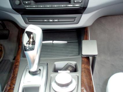 En hand justerar en del av konsolen i en BMW X5/X6.