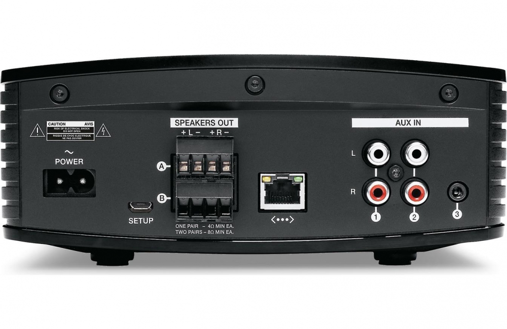 SA-5-förstärkaren har totalt tre aux-ingångar så att du också kan ansluta icke-streamande källor, t.ex. CD-spelare. A+B högtalarutgång så att du kan koppla totalt fyra högtalare till förstärkaren samtidigt.