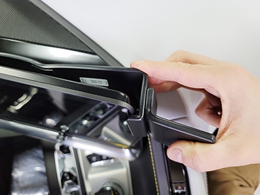 2. Pressa in kanten i springan så att den hakar fast om instrumetpanelens huv.