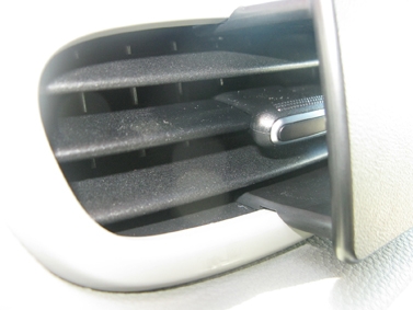 2. Pressa fästets nederdel uppåt och framåt och haka fast den spårfästa nederkanten om ramen som omger luftgallret.
