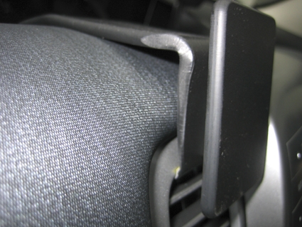 2. Pressa fästets nederdel mot luftgallret så att den vinklade överdelen hakar fast i springan.
