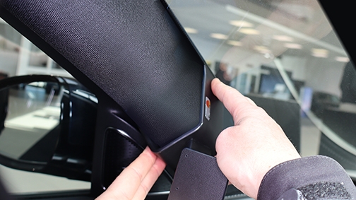 3. Pressa nedåt på fästets överdel så att den hakar fast ordentligt om A-stolpen.