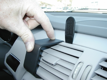 2. Placera fästets vinklade nederdel under ramen som omger luftgallret.