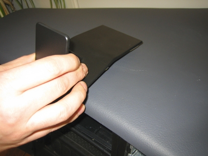 2. Pressa fästet nedåt så att tejpen fäster.