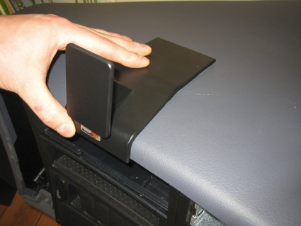 1. Avlägsna skyddsplasten på de dubbelhäftande tejpremsorna på ProClip-fästet. Placera fästet mot kanten av instrumentbrädan.