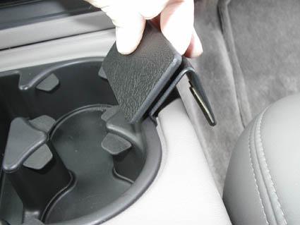 En hand håller en svart del av konsolen för Chevrolet Avalanche.