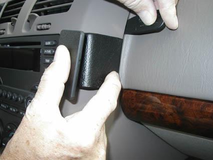 Två händer installerar en del på insidan av Chevrolet Malibu 04-07.