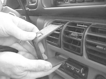 En hand justerar kontrollpanelet i en Chrysler Voyager 94-95.
