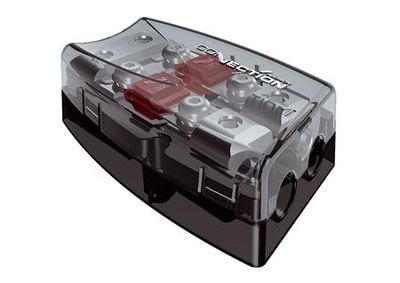 Säkringsblock ifrån Connection för den seriösa entusiasten. Gjord i fast maskinbearbetad mässing för en bättre strömöverföring. Den har även ett hölje i polykarbonatkristaller vilket gör den stark och reptålig.  BFD 21 innehar också räfflade skruvar för bättre kontakt med sladden. Infälld kabelkrage för skydd mot lösa kabeltrådar.