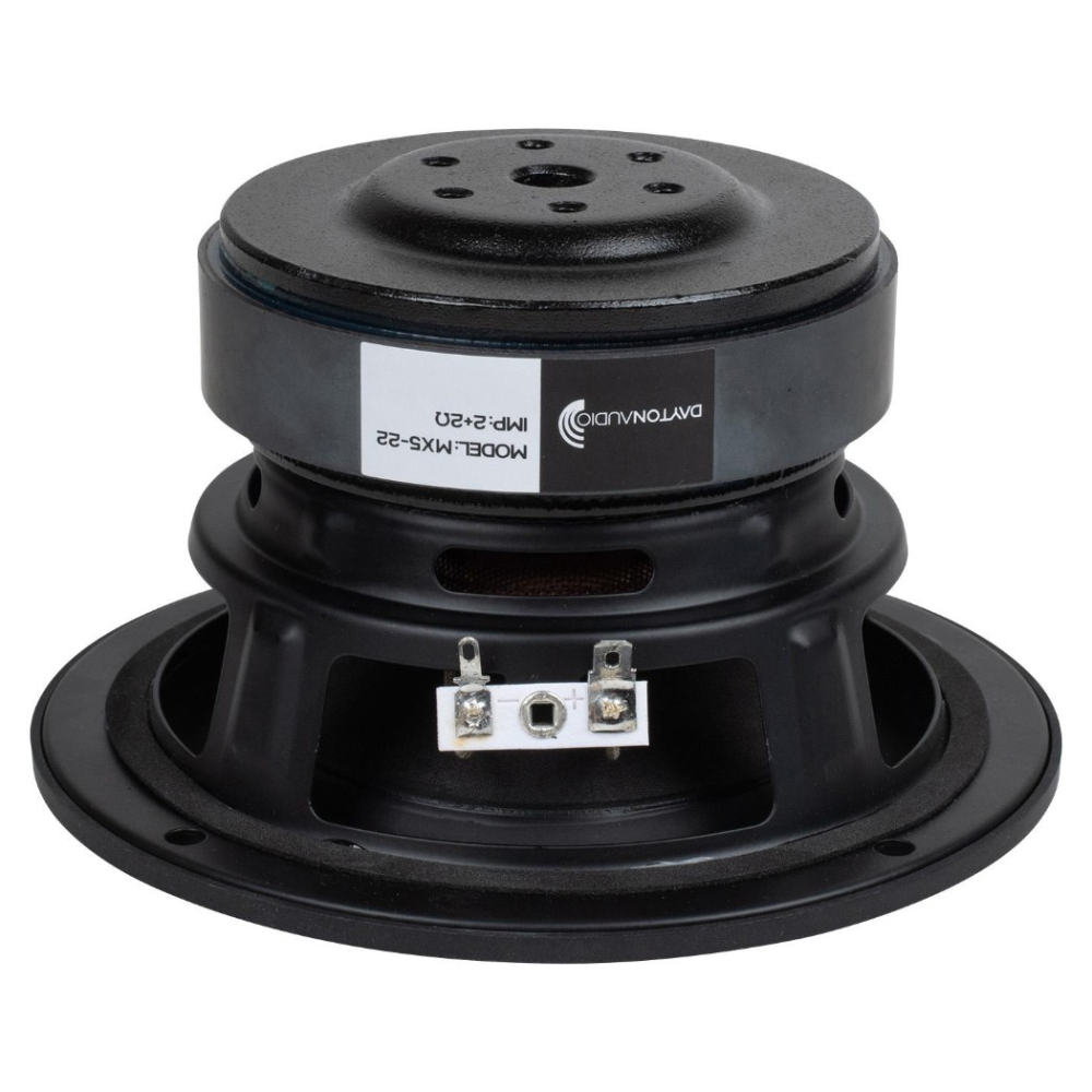 Dayton Audio MX5-22 är ett kompakt 5,25-tums baselement som är byggt för att leverera förvånansvärt djup och kontrollerad bas i små installationer. Med lång slaglängd, ventilerad motor och dubbla 2 ohm talspolar får du både flexibilitet och prestanda i ett format som passar där utrymmet är begränsat. Konstruktionen är genomtänkt för att ge låg distorsion, stabil drift och en basåtergivning som känns större än elementets storlek antyder.