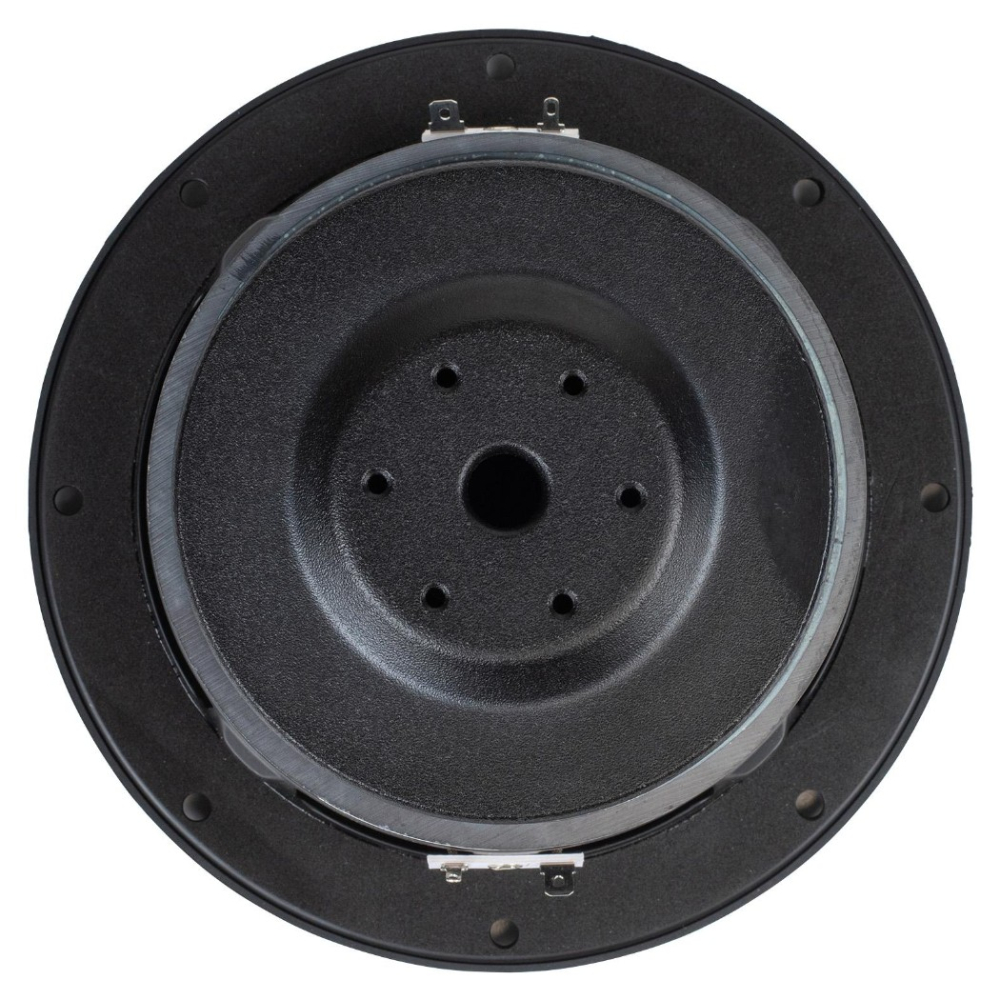 Motorkonstruktionen är ventilerad i flera steg för att hålla temperaturen nere och minska kompression vid hög belastning. Den interna aluminiumringen stabiliserar induktansen och bidrar till en renare återgivning. Tillsammans med en robust upphängning och stabil stålkorg ger det ett element som klarar hög belastning över tid utan att tappa kontroll.