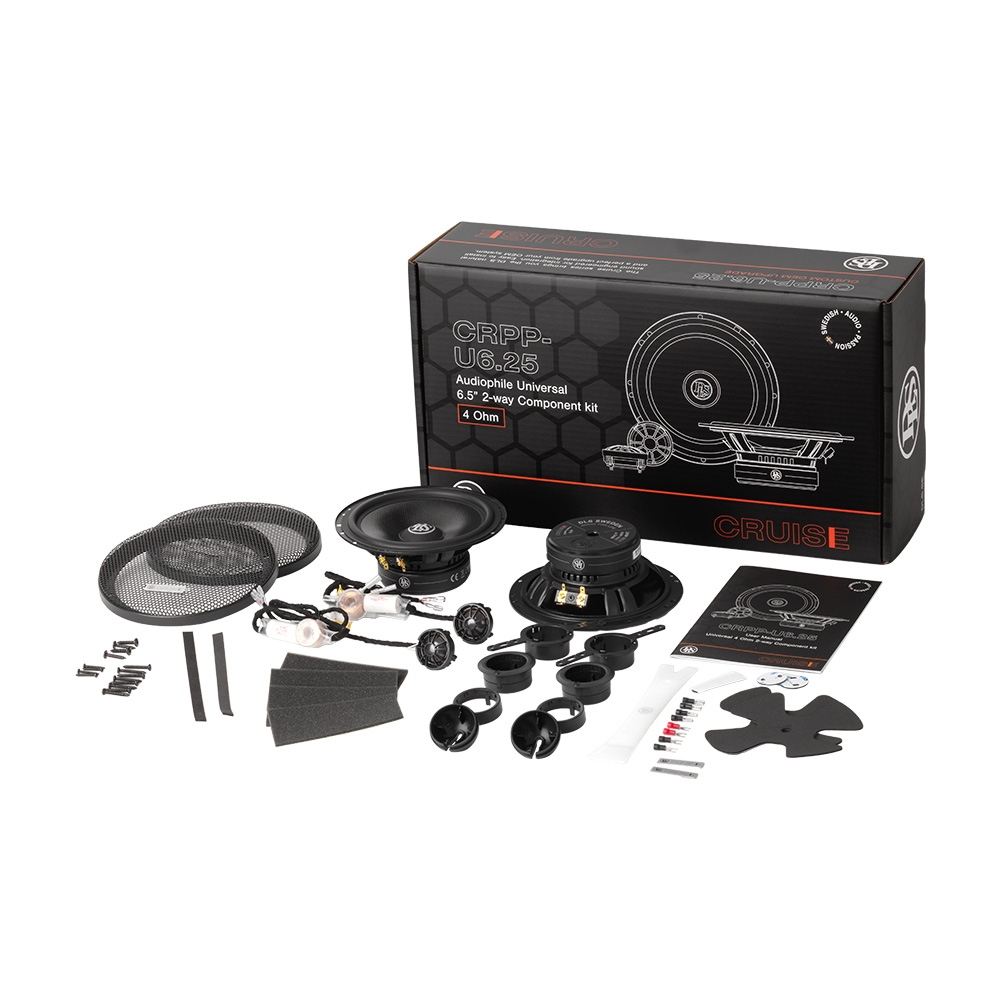 DLS Cruise CRPP-U6.25 är ett komplett kitsystem med midbas och diskant byggt för dig som vill uppgradera ljudet i bilen, en gång för alla. Med ett naturligt, klart och dynamiskt ljud lyfter högtalarna varje resa, hur kort den än är. I lådan hittar du CRPP-UW64 och CRPP-UT25, tillsammans med delningsfilter med Mundorf-kondensator och sexkantmönstrade galler för synlig montering i dörrsida, kickpanel eller låda.