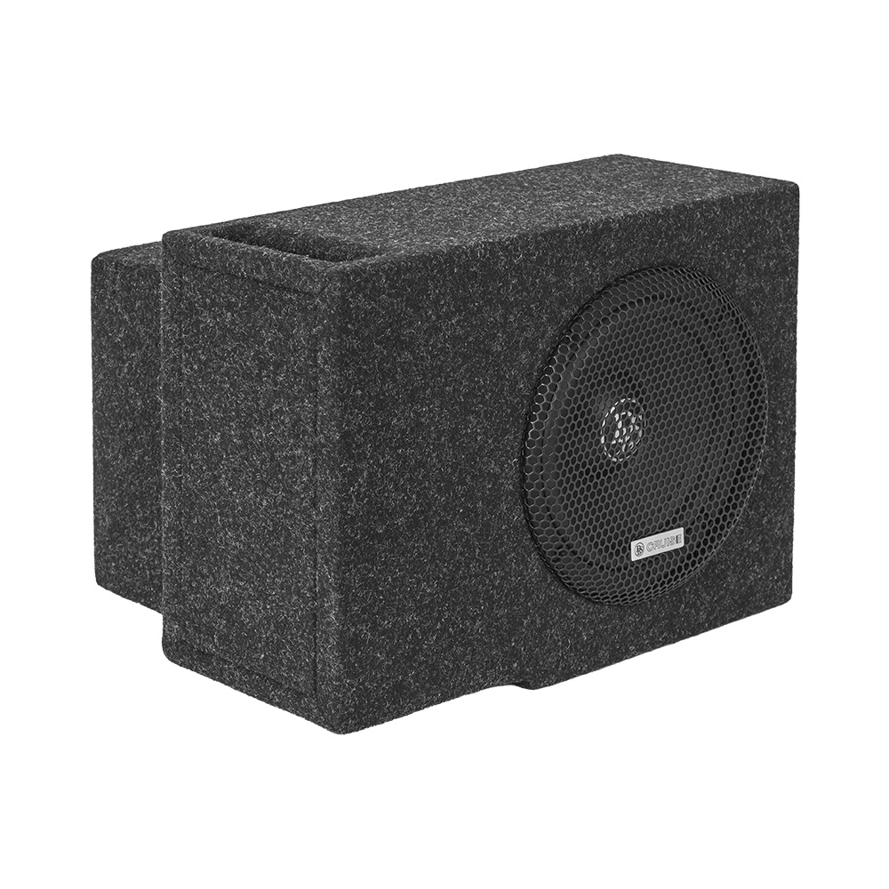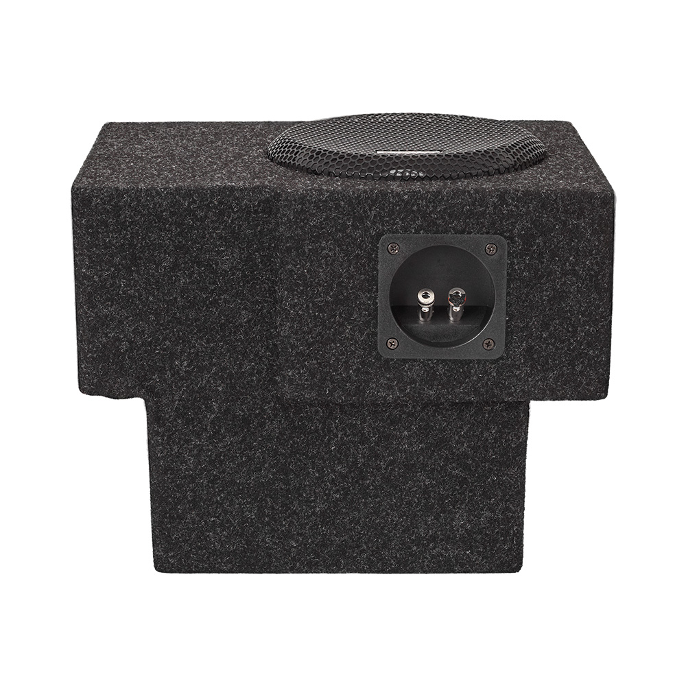 Lådan är formbyggd för att försvinna i bilen, med dold placering och en finish som känns genomarbetad. Stabilt kabinett, tydlig terminalplacering och skyddsgaller i metall gör installationen robust och redo för långvarig användning. Basreflexkonstruktionen med spaltport är vald för sin verkningsgrad i liten volym och sitt sätt att behålla kontrollen när du höjer volymen. I praktiken betyder det en botten som känns tät, följsam och lätt att integrera med frontsystemet.