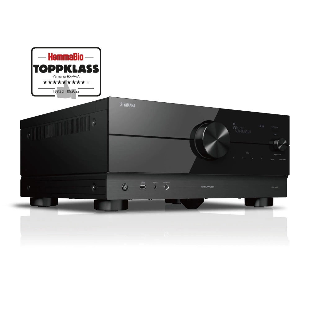 Yamaha Aventage RX-A4A är en imponerande 7-kanalig hemmabiöförstärkare av hög kvalité. Det som särskiljer Aventage-modellerna från RX-V-serien är att Yamaha valt att använda ljudkomponenter av extremt hög kvalitet. Ett uppskattat tillägg är Anti-Resonance Technology (A.R.T) som minskar mängden vibrationer i chassit och plockar fram mer nyanser och skapar mer tyngd till ljudet, musik som film. Nytt för denna gång är att Yamaha även tagit sin omtycka design till en ny nivå, med en minimalistisk design och en rejält tilltagen volymratts Här hittar du även självklarheter som MusicCast, samt stöd för HDMI 2.1, VRR, HDR och mer därtill - samt stöd för okomprimerad 8K. En kompetent, kapabel och kraftull bioreceiver som gör sig utmärkt till biorummet, vardagsrummet eller gaminghörnan, helt enkelt!