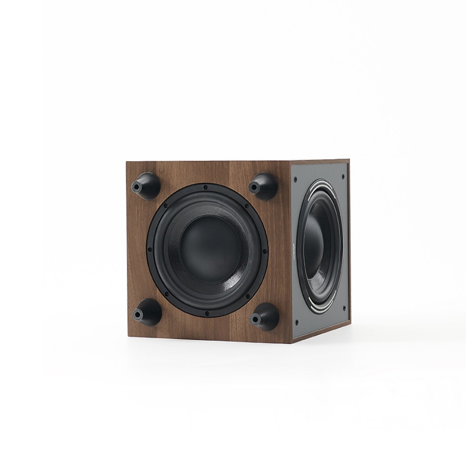 Horus 8S kombinerar en aktiv och en passiv 8-tums enhet för att ge kraftfull bas utan att ta mycket plats. Den passiva nedåtriktade radiatoren ger extra slagkraft i de lägsta frekvenserna utan att öka storleken. Den kompakta designen gör subwoofern lätt att placera i olika miljöer, från vardagsrum till dedikerade lyssningsrum.