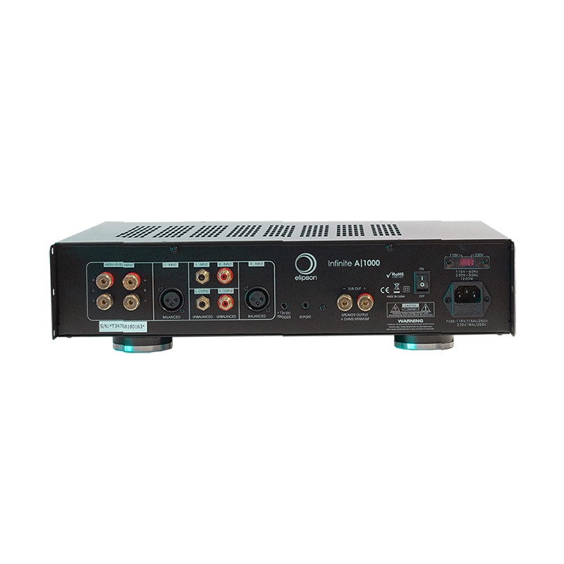 Elipson Infinite A1000 slutsteg med DSP är ett kraftfullt Class D-mono slutsteg med inbyggd DSP, speciellt utvecklat för att driva en eller flera Infinite S12-subwoofers. Med justerbara filter och EQ-inställningar ger det exakt kontroll över basåtergivningen, vilket förbättrar ljudupplevelsen i hemmabio eller ljudsystem.