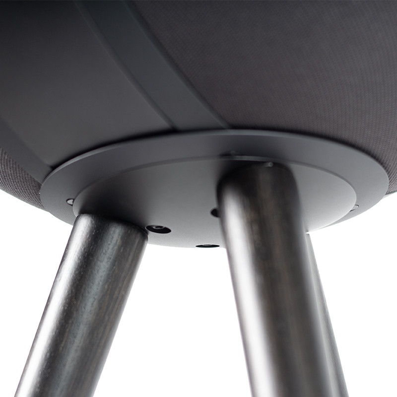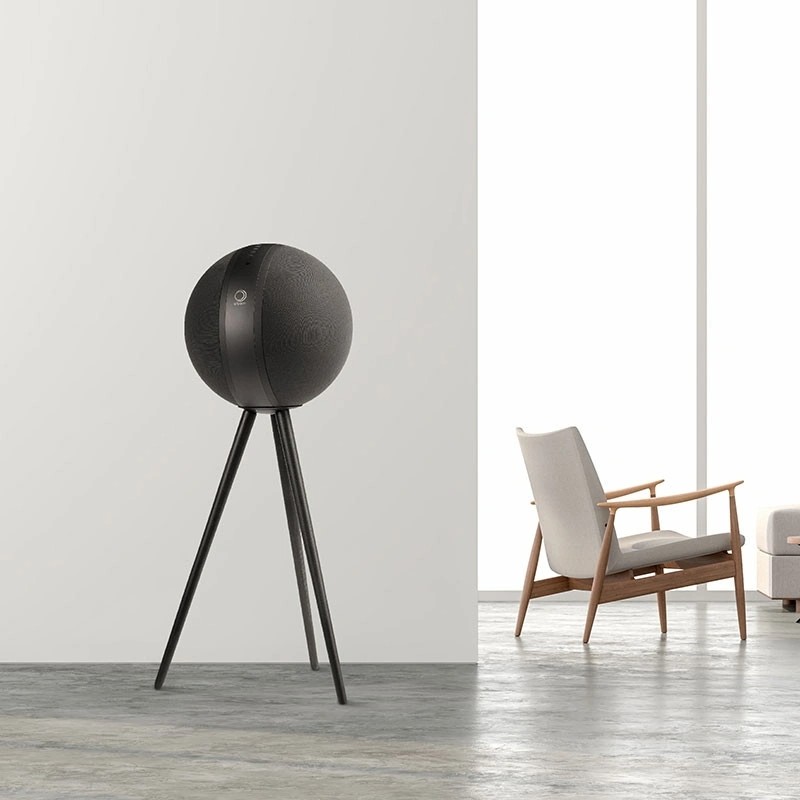 Stativet har en stabil konstruktion med bas i metall och ben i trä som ger både hållbarhet och en stilren look. Den svarta finishen passar in i de flesta inredningar och kompletterar högtalarens design.