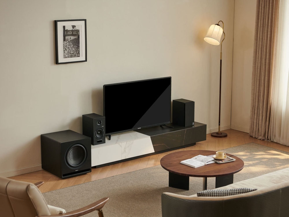 Med en stor 300 mm fiberglaselement och 500 W Class D-förstärkare levererar Premium Sub 12 djup och exakt bas även i större rum. Subsoniskt filter och DSP Boost optimerar ljudet för att undvika oönskade resonanser och ge en fyllig men kontrollerad basåtergivning. Det innebär att du får ett basljud som både känns och hörs tydligt utan att bli överdrivet.