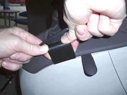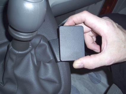 En hand visar hur man fäster en konsol på Fiat Idea.