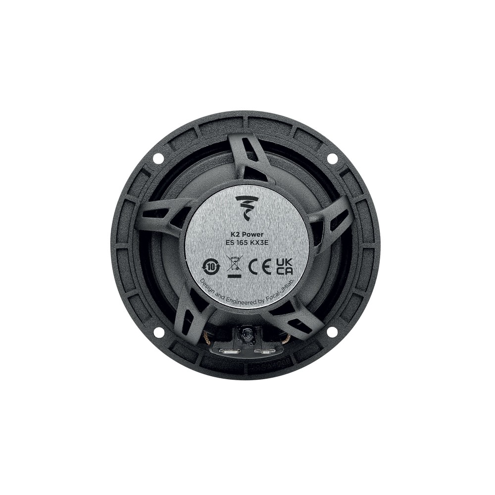Baselementen använder Focals ikoniska K2-sandwichmembran i aramidfiber, kombinerat med TMD-upphängning, progressiv spider och effektiv talspoleventilation. Konstruktionen ger hög effekttålighet, låg distortion och konsekvent prestanda över tid.