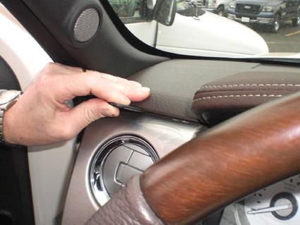 En hand som rör vid instrumentpanelen i en Ford F-Series 150 09-14.