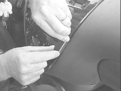 En person installerar en del i instrumentpanelen på en Ford Focus 99-04.