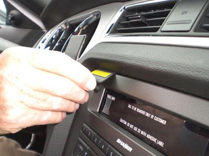 En central del av instrumentbrädan i en Ford Mustang 10-14.