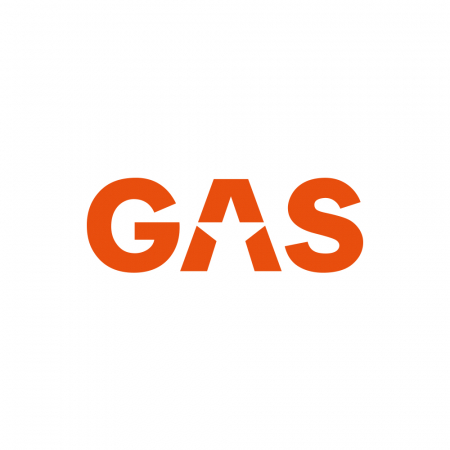 GAS-logotyp i orange färg med stjärna i bokstaven A.