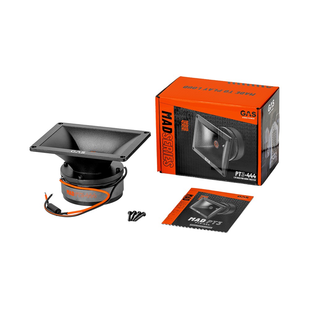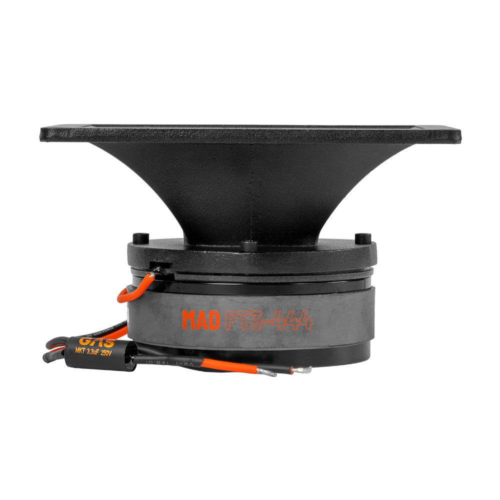 GAS MAD PT3-444 är en horndiskant framtagen för höga ljudtryck, men med ett lugn och en tydlighet som gör den lätt att använda i genomtänkta system. Den är i grunden byggd för SPL, men beter sig förvånansvärt sansat även när den kombineras med bra midbasar och rejäl bas. Resultatet är ett öppet och tydligt toppregister som hänger med när systemet spelar hårt, utan att kännas stressat, vasst eller påträngande.