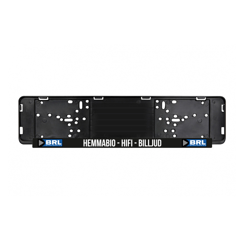 Hålare för registreringsskylt med BRL-logotyp och text.
