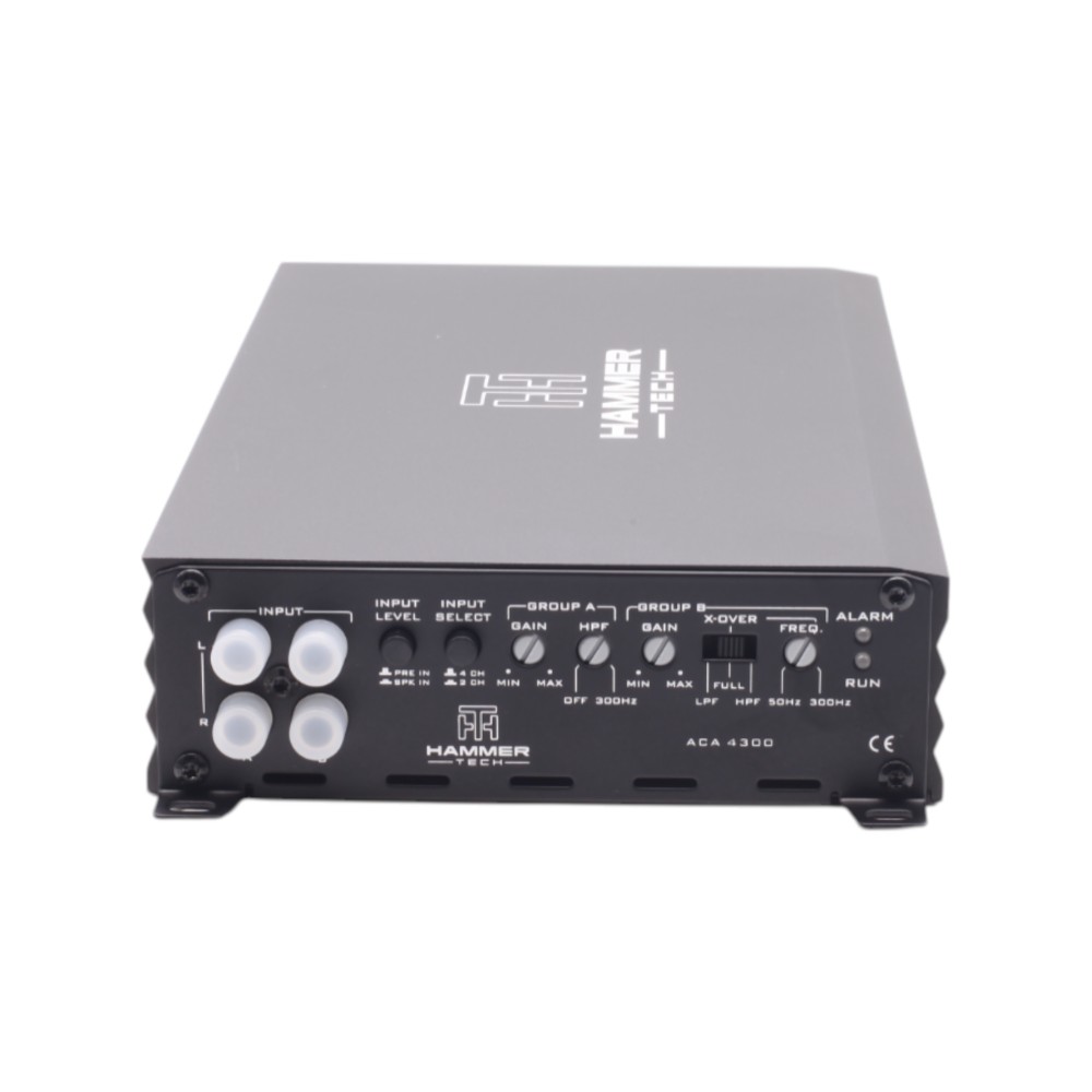 Hammer Tech ACA 4300 är ett 4-kanaligt klass D-slutsteg i Assault Class-serien, byggt för att leverera mycket effekt i ett kompakt chassi. Med upp till 4x400 W RMS, bryggmöjlighet till 2x800 W RMS och flexibel filtrering är det ett slutsteg som passar både kraftiga framsystem, midbasar och enklare baslösningar.