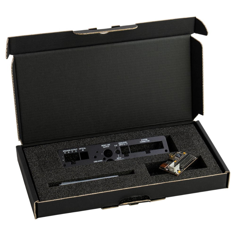 HD-Audio USB-interfacet utökar funktionaliteten i DSP.3S med en högupplöst USB-ingång och omvandlar en PC eller smartphone till en uppspelningsenhet för HD-ljud. Levereras med en modellspecifik sidopanel till DSP.3S.