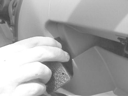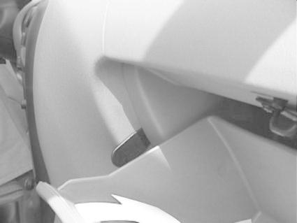 Hand som håller en svart kloss vid insidan av en bilpanel.