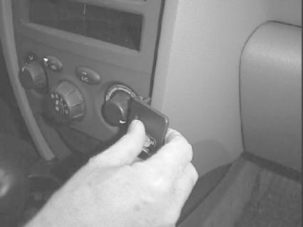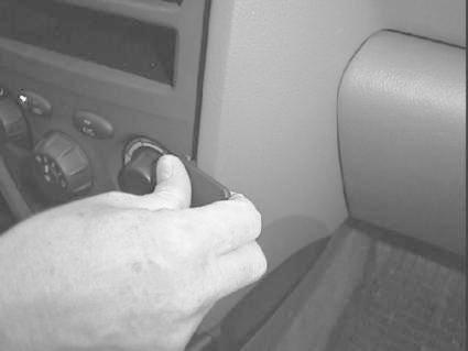 En hand justerar reglaget i Hyundai Santa Fe 01-05 interiör.