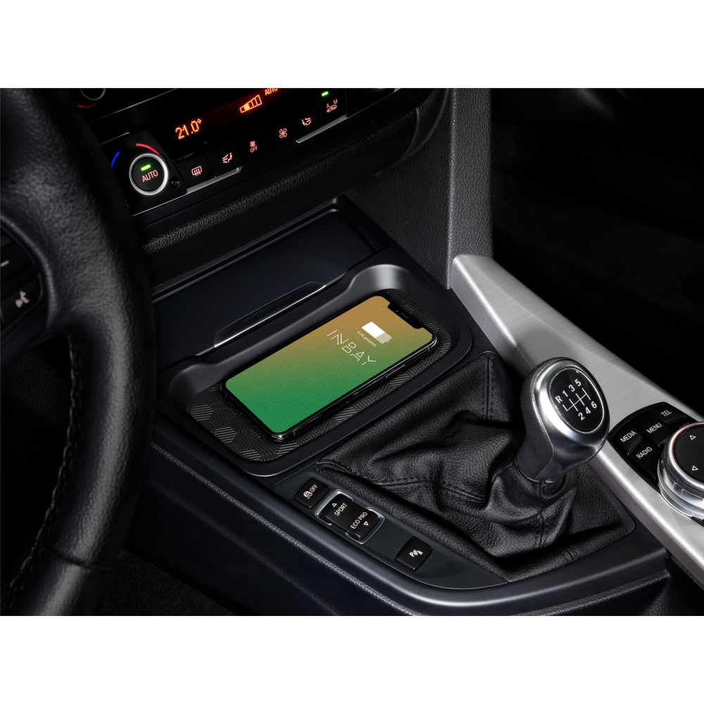 ACV 241023-54-1 är en INBAY® pocket designad för BMW 3-serie (F) och 4-serie (F) med vänsterstyrning. Denna produkt möjliggör trådlös induktiv laddning av smartphones med en effekt på upp till 10 Watt. INBAY® pocket är tillverkad i Tyskland och uppfyller Qi-standarder för trådlös laddning, vilket gör den kompatibel med de flesta smartphones som är certifierade av Wireless Power Consortium.