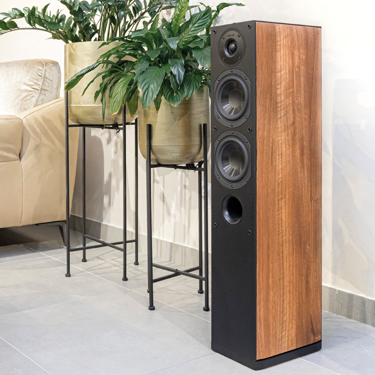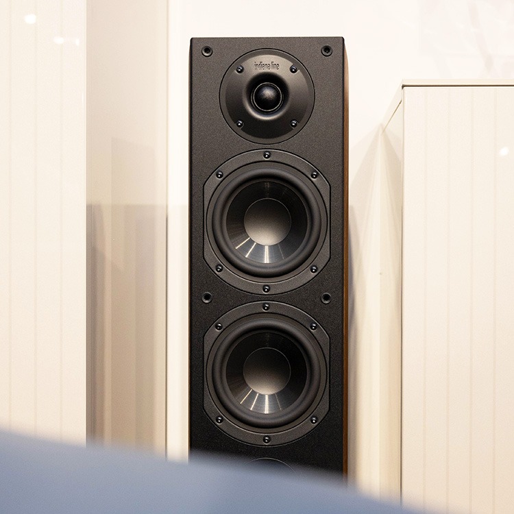 "At a very fair price, Indiana Line offers the Nota, a sophisticated, mature-sounding floorstanding speaker that delivers impressive sound with any type of music. Its slim cabinet is further enhanced by elegant wood-effect side panels."
