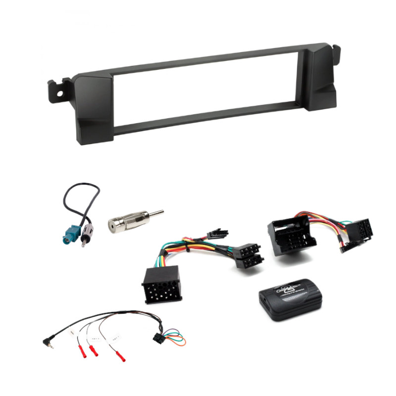 Detta är ett komplett installationskit för att byta huvudenhet (enkel-DIN) i alla BMW E46-modeller mellan 1999-2006. Medföljande kablage gör det möjligt att koppla in en eftermarknadsenhet, men samtidigt behålla dina befintliga rattkontroller. Detta installationspaket passar endast bilar utan original navigation, oavsett ljudpaket.