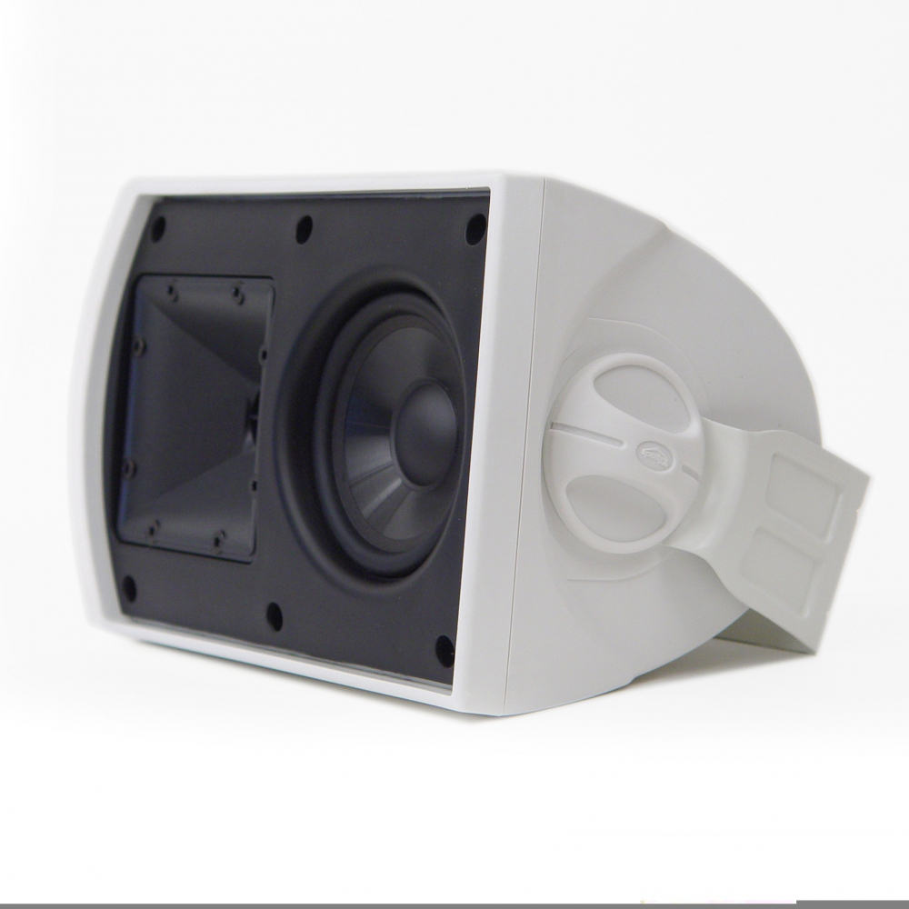 Deras allväders-högtalare har givetvis begåvats med deras hornladdade och högupplösta titanium-diskant, som vi känner igen från deras Reference-högtalare för hemmabruk inomhus. Tillsammans med ett effektivt 4" element får vi en skapelse som har 91 dB i känslighet. Den höga känsligheten gör att behovet av förstärkareffekt minskas drastiskt, så även mindre förstärkarmodeller kan hantera de här högtalarna på ett föredömligt sätt, även om det givetvis blir mer kontroll och pondus med en större variant.
