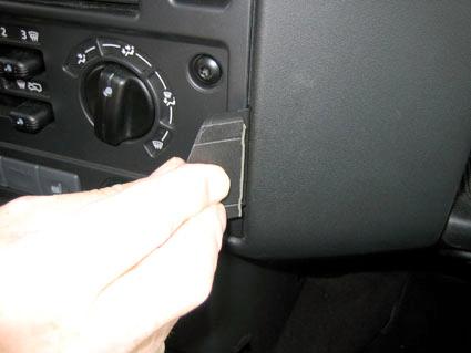 En hand som placerar en del på instrumentbrädan i en Landrover Defender.