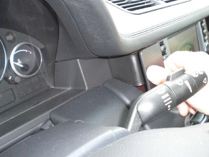 En hand interagerar med en panel i en bils mittkonsol.